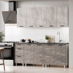 Кухонный гарнитур Модус Лайт 2.0 м (Цемент светлый/Камень темный/Черный)