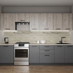 Фасады верхних модулей со свесом 12 мм дают возможность использовать без установки ручек.