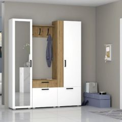 Прихожая Прайм - 1 Белый Текстурный/Дуб Крафт Золотой