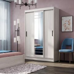 Трёхдверный шкаф-купе "Тео" ШКК-02 представляет собой сочетание практичности и функциональности. Это оптимальный вариант с точки зрения эргономики пространства. Раздвижные створки снабжены удобными ручками, центральная створка полностью декорирована зеркалом с еврокромкой, которое создаёт иллюзию расширенного пространства. Внутри с одной стороны находятся пять просторных полок для хранения вещей и постельного белья, с другой стороны – вместительная зона хранения с двумя горизонтальными хромированными штангами для одежды на вешалках.